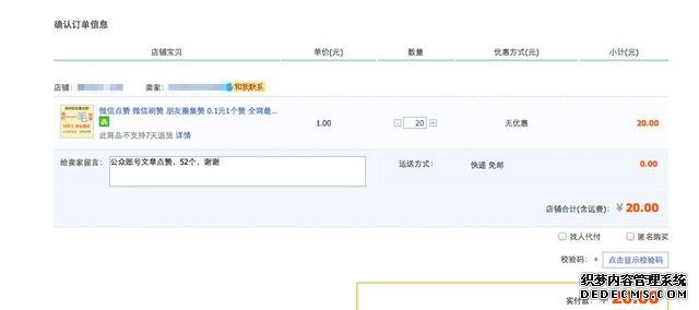 接着,在淘宝上搜索相关微信服务的商家,为了验证刷量技术的普及率,分别找了不同的商家来刷阅读率和点赞数,点赞是4毛钱一个,我花了20元钱买了50个,送了2个;阅读率是10元1000个,我花了10元钱买了1000个,对方很豪爽的赠送600个,店家说目前微信的这些数据都是可以刷的,一般10分钟内可以全部搞好: